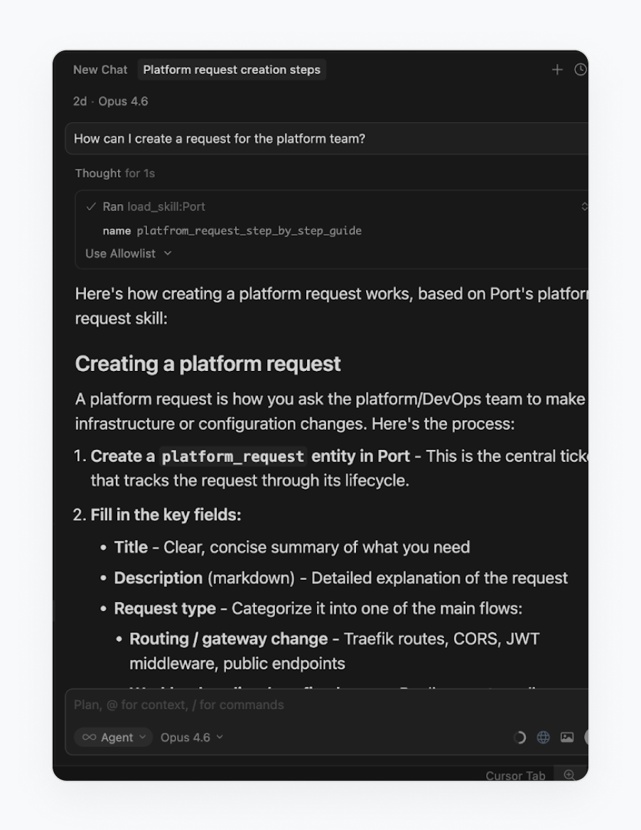 4. Done! The skill is available to your engineers through Port's MCP server