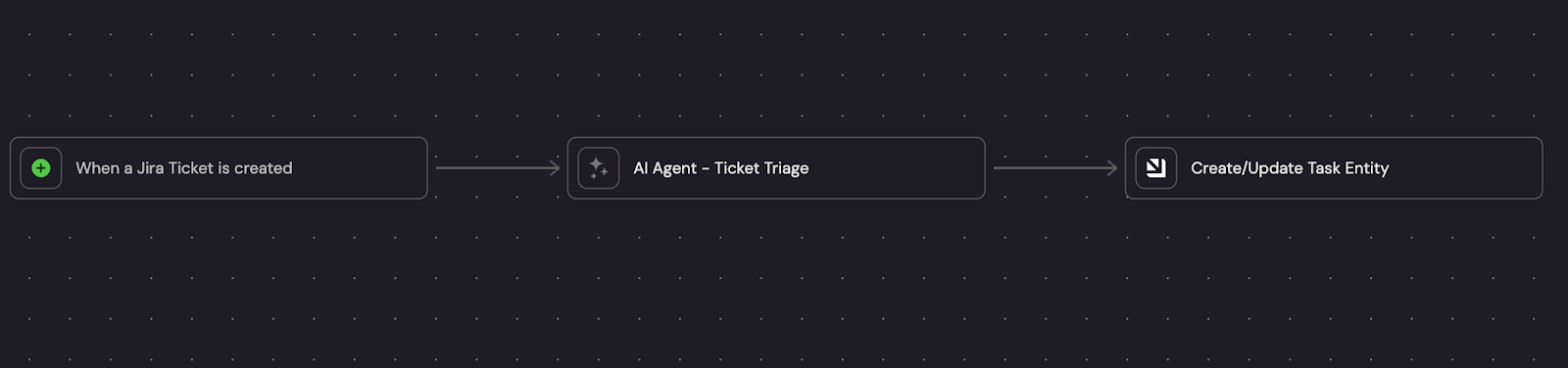 Ticket triage. Another organization built an agent that receives every incoming Jira ticket, reads the description, classifies it by type and severity, assigns it to the right team, and sets priority. 36 automated runs in December alone. Before this, a human did that routing manually for every ticket. Now a human only gets involved when the ticket is already classified, prioritized, and sitting in the right team's queue.