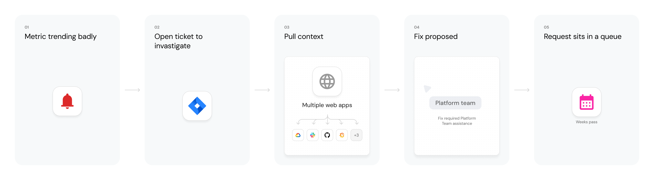 - Action: Fixing what you’ve observed. Spinning up an environment. Triggering a rollback. Paging the right team. All without filing a ticket and waiting for someone else to do the work.